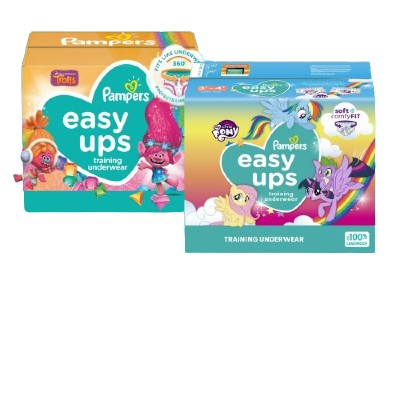 Les sous-vêtements d’entraînement Pampers Easy Ups, à l’effigie de vos personnages préférés de PJ Masks, sont une façon simple et amusante de se préparer pour les sous-vêtements. Notre taille extensible à 360° suit les mouvements de votre enfant pour s’ajuster comme un vrai sous-vêtement et les aider à baisser et remonter leur sous-vêtement avec facilité. De plus, ils sont les seuls sous-vêtements d’entraînement munis de rainures Extra Absorb Channels pour offrir une protection remarquable tandis que votre petit est votre héros du jour. Munis de doubles barrières anti-fuites Dual Leak Guard Barriers, les sous-vêtements d’entraînement Pampers Easy Ups sont conçus pour arrêter les fuites. De plus, ils sont hyper doux et offrent la sensation de sous-vêtements de coton. Grâce aux côtés facilement détachables et aux motifs de PJ Masks à l’avant et à l’arrière, votre petit héros aura l’impression de porter des sous-vêtements. Vous saurez que c’est Pampers.